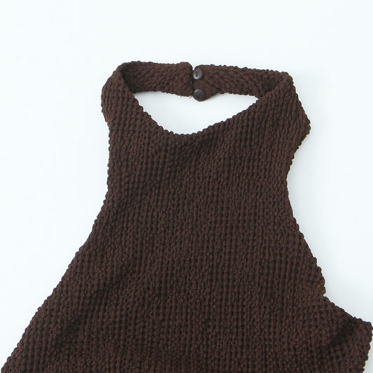 European and American women's slim fit vest top sexy hanging neck sleeveless high slit jumpsuit