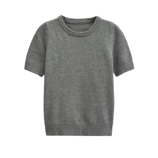 European and American style beaded round neck pullover short sleeved slim knit sweater