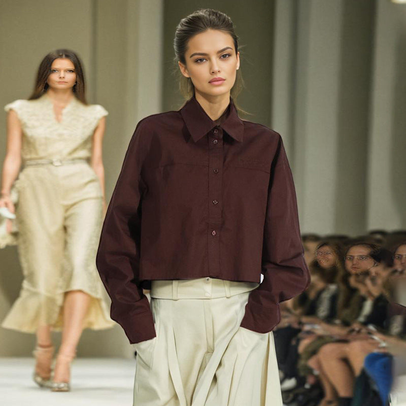 Minimalist style women's casual loose solid color long sleeved short shirt